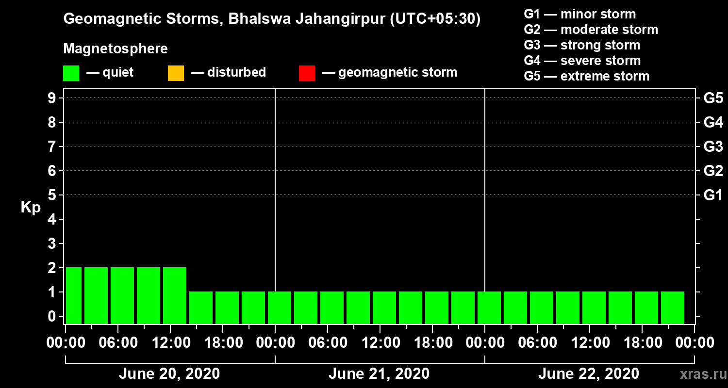 Geomagnetic storms in Bhalswa Jahangirpur — Jun 22, 2020