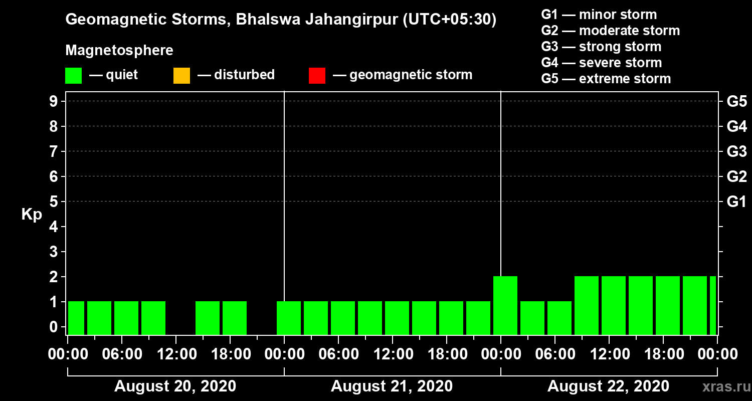 Geomagnetic storms in Bhalswa Jahangirpur — Aug 22, 2020