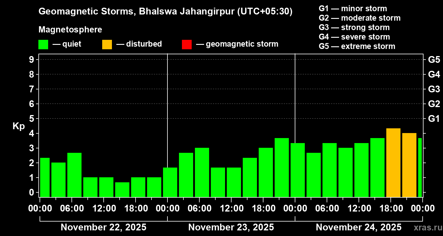 Geomagnetic storms in Bhalswa Jahangirpur — Nov 24, 2025