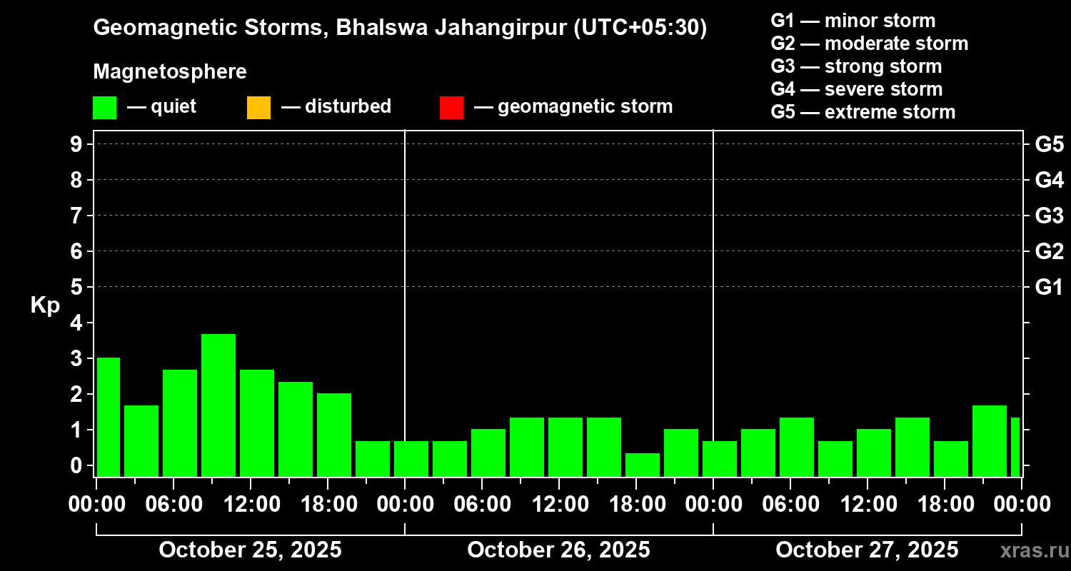 Geomagnetic storms in Bhalswa Jahangirpur — Oct 27, 2025