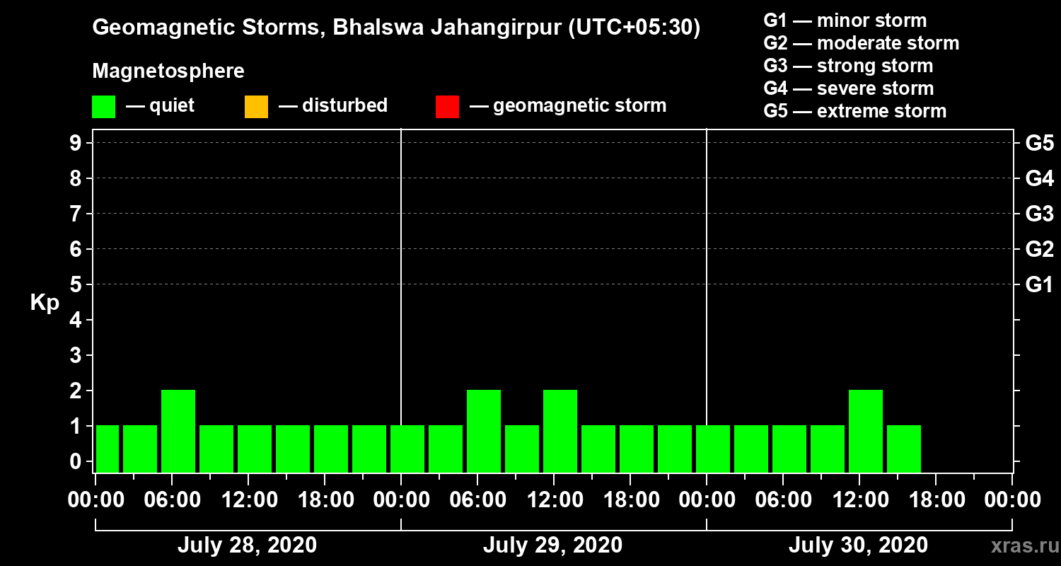 Geomagnetic storms in Bhalswa Jahangirpur — Jul 30, 2020