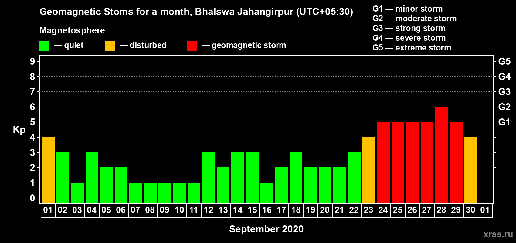 Geomagnetic storms in Bhalswa Jahangirpur — Sep 30, 2020
