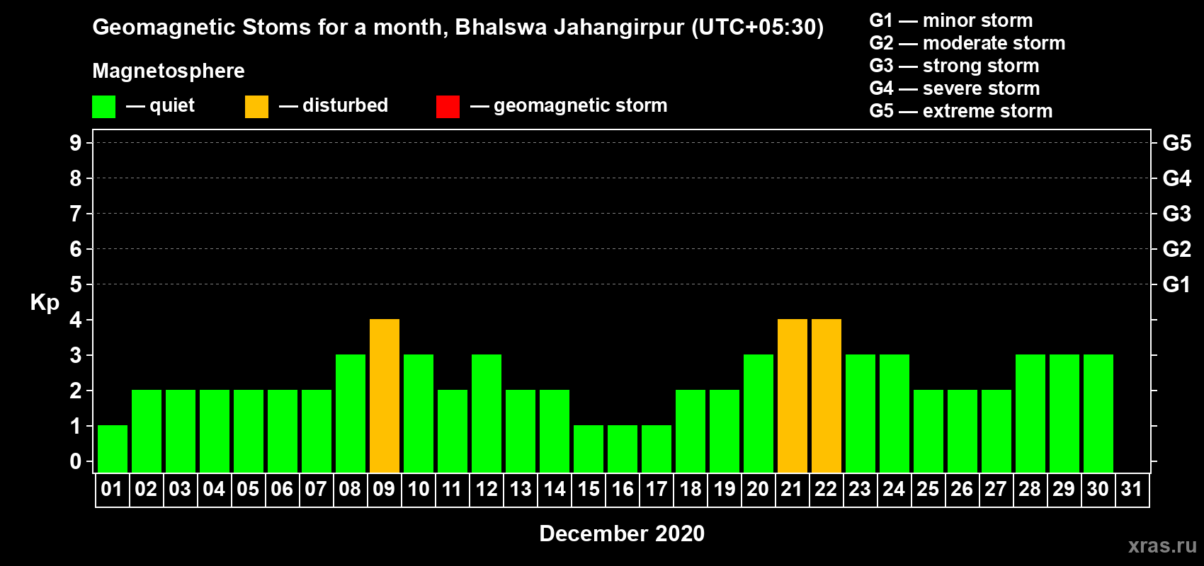 Geomagnetic storms in Bhalswa Jahangirpur — Dec 31, 2020