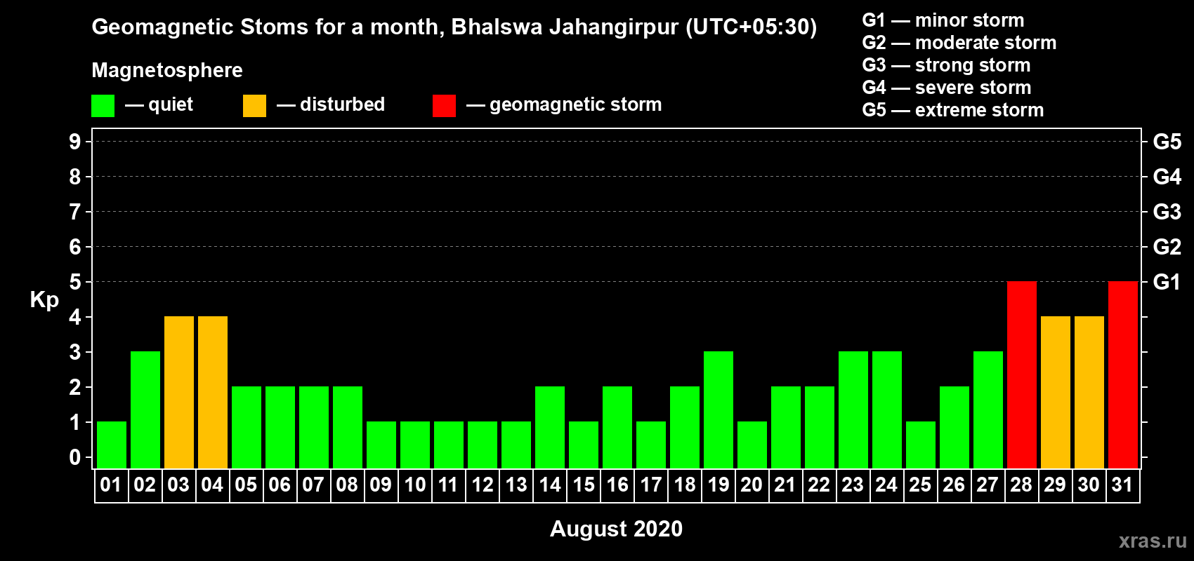 Geomagnetic storms in Bhalswa Jahangirpur — Aug 31, 2020