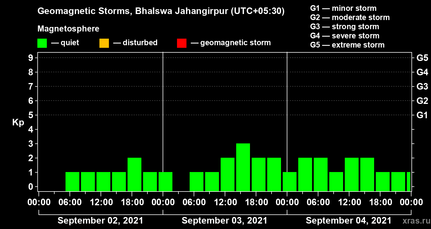 Geomagnetic storms in Bhalswa Jahangirpur — Sep 04, 2021