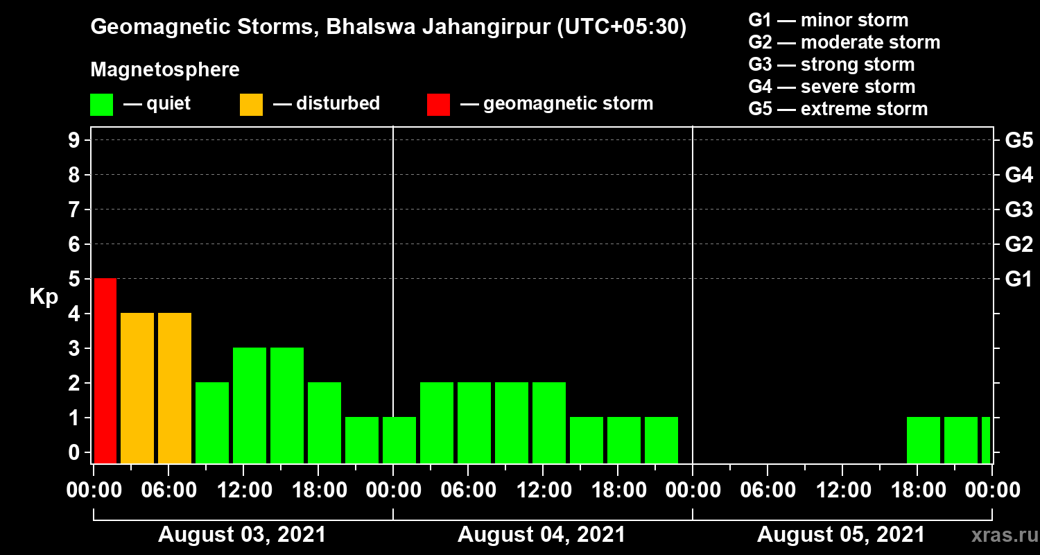 Geomagnetic storms in Bhalswa Jahangirpur — Aug 05, 2021