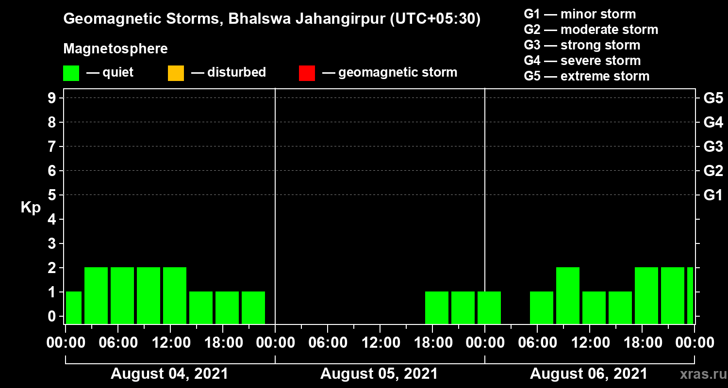 Geomagnetic storms in Bhalswa Jahangirpur — Aug 06, 2021