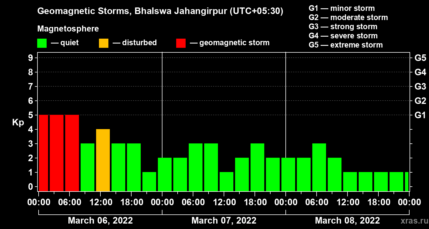 Geomagnetic storms in Bhalswa Jahangirpur on Mar 08, 2022
