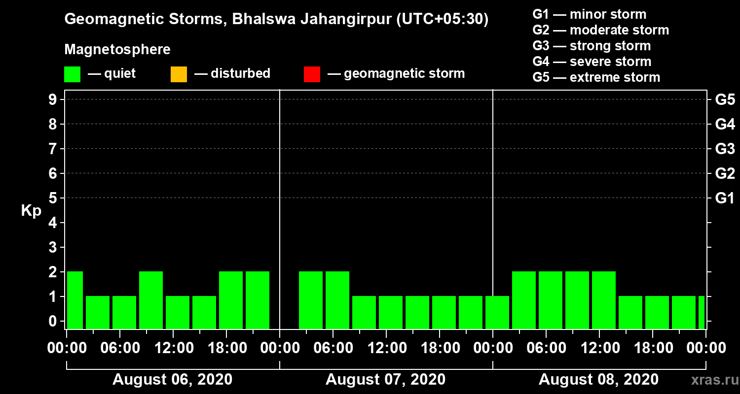 Geomagnetic storms in Bhalswa Jahangirpur — Aug 08, 2020