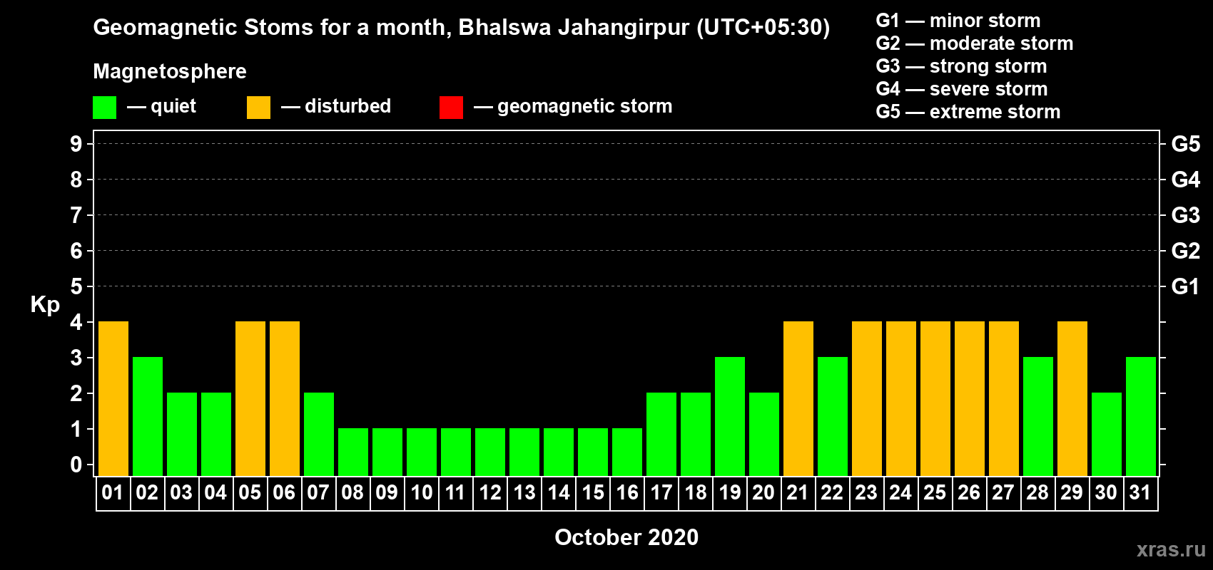 There were no days with an increased level of geomagnetic disturbance in October 2020