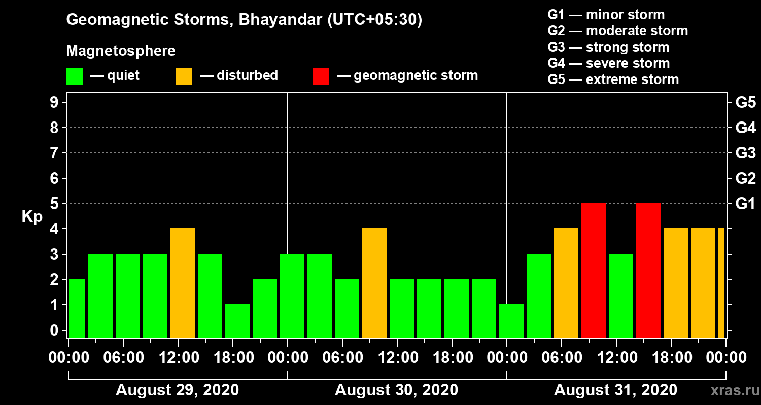 Geomagnetic storms in Bhayandar — Aug 31, 2020