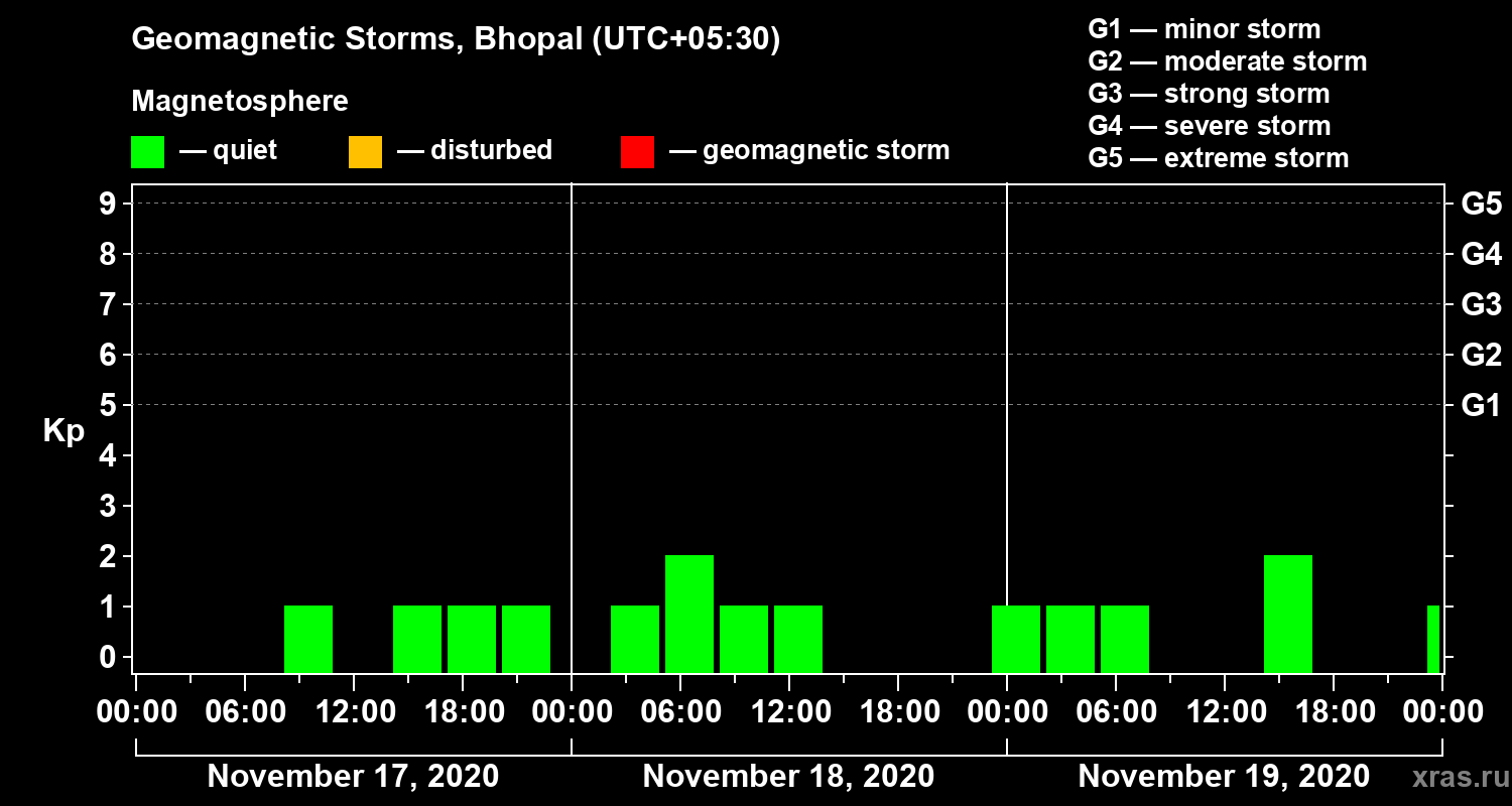 Geomagnetic storms in Bhopal on Nov 19, 2020