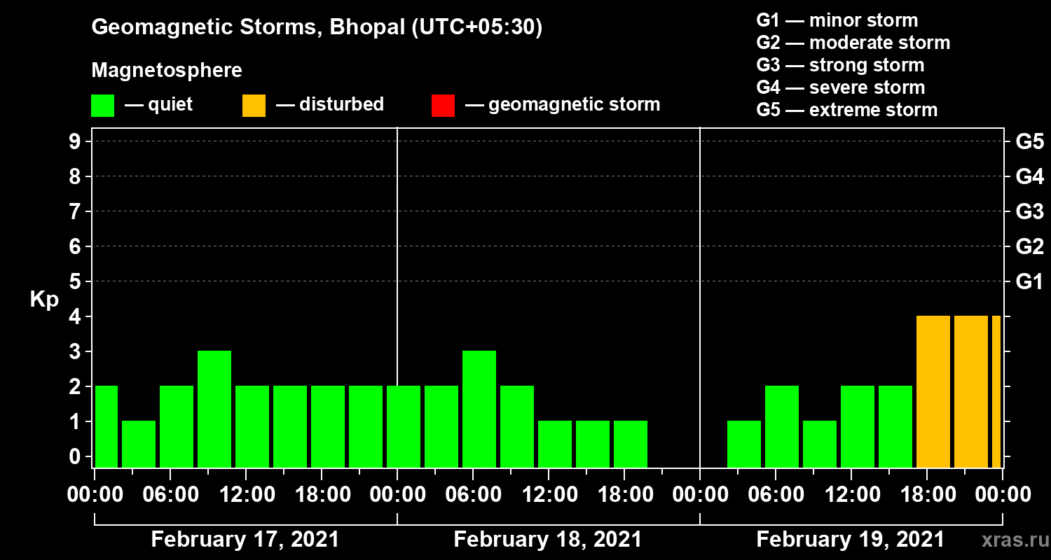Geomagnetic storms in Bhopal on Feb 19, 2021