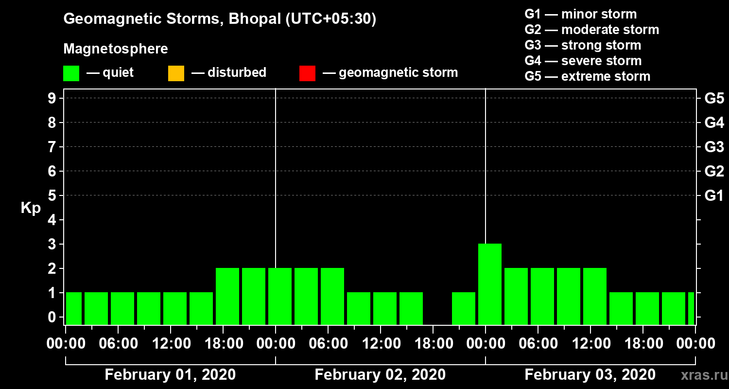 Geomagnetic storms in Bhopal on Feb 03, 2020