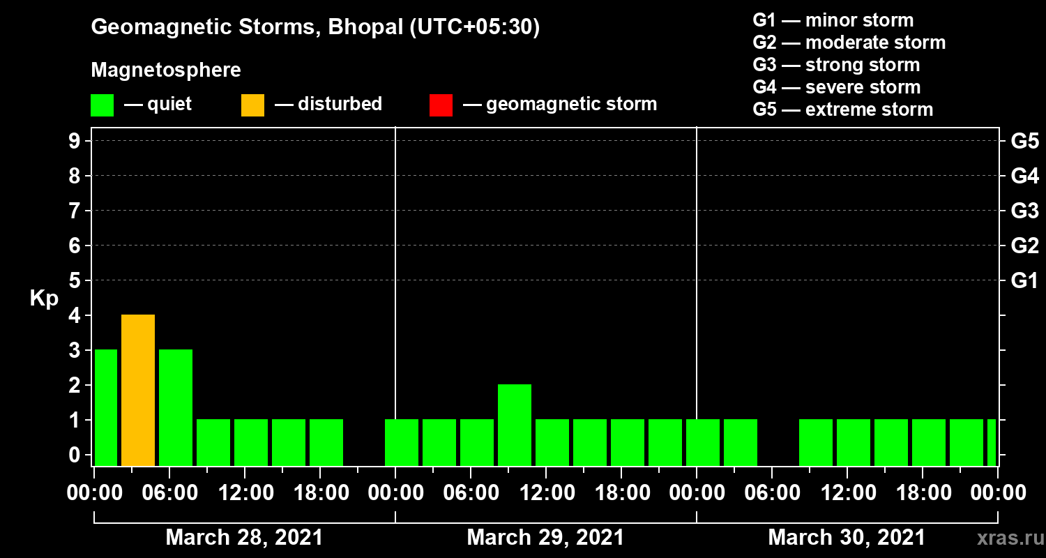 Geomagnetic storms in Bhopal on Mar 30, 2021