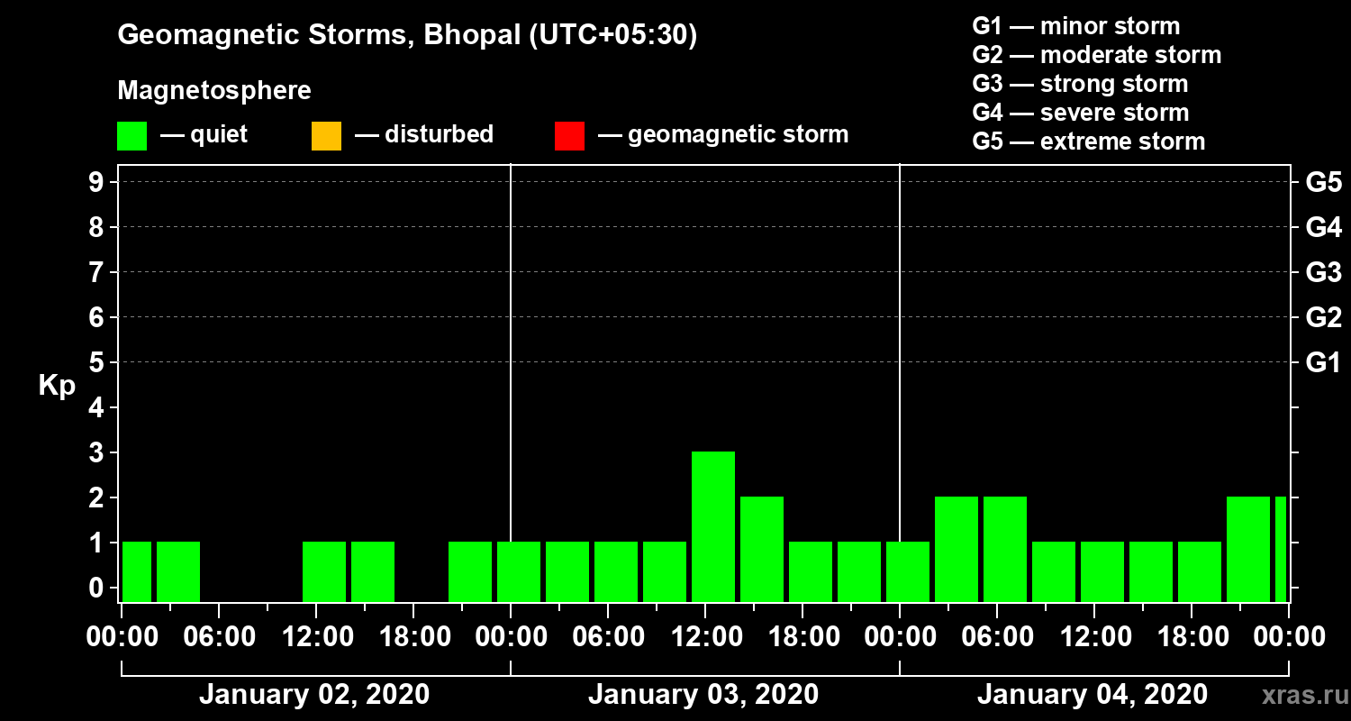 Geomagnetic storms in Bhopal on Jan 04, 2020