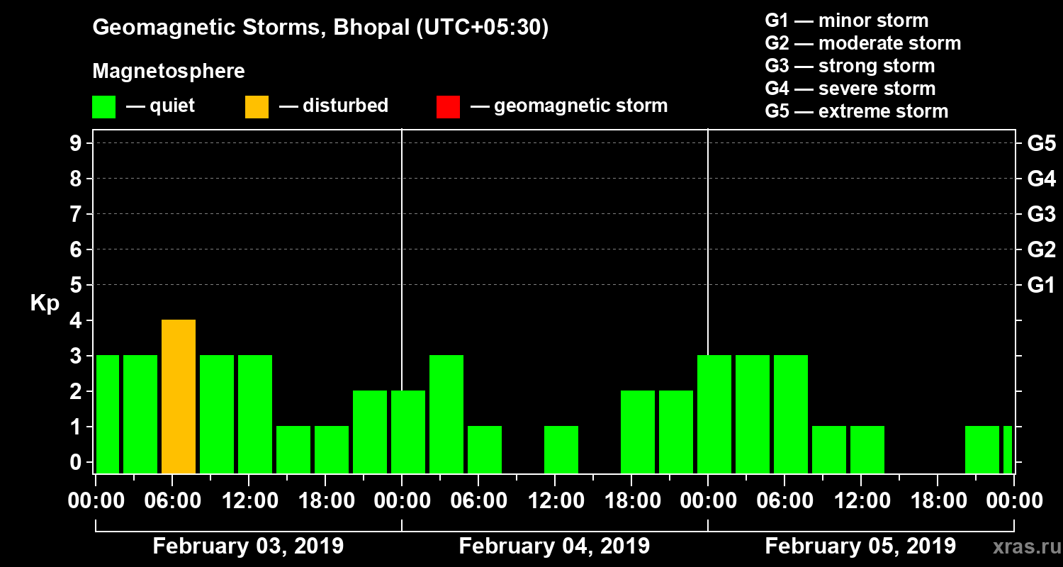 Geomagnetic storms in Bhopal on Feb 05, 2019