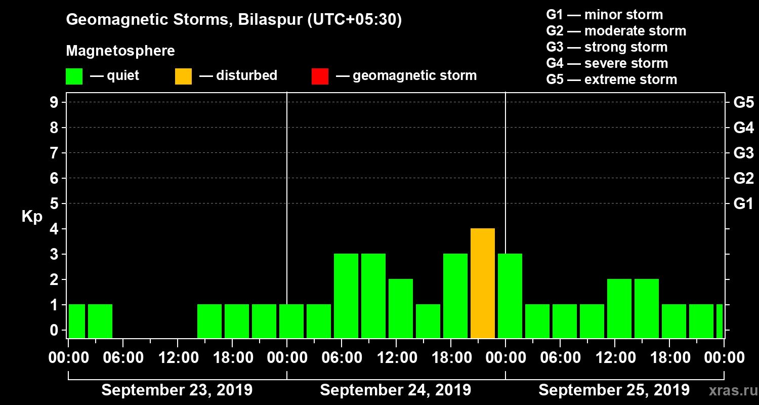 Geomagnetic storms in Bilaspur — Sep 25, 2019