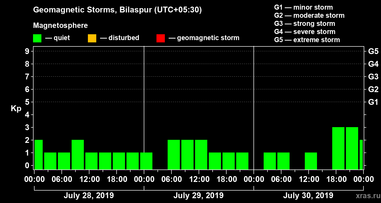 Geomagnetic storms in Bilaspur — Jul 30, 2019