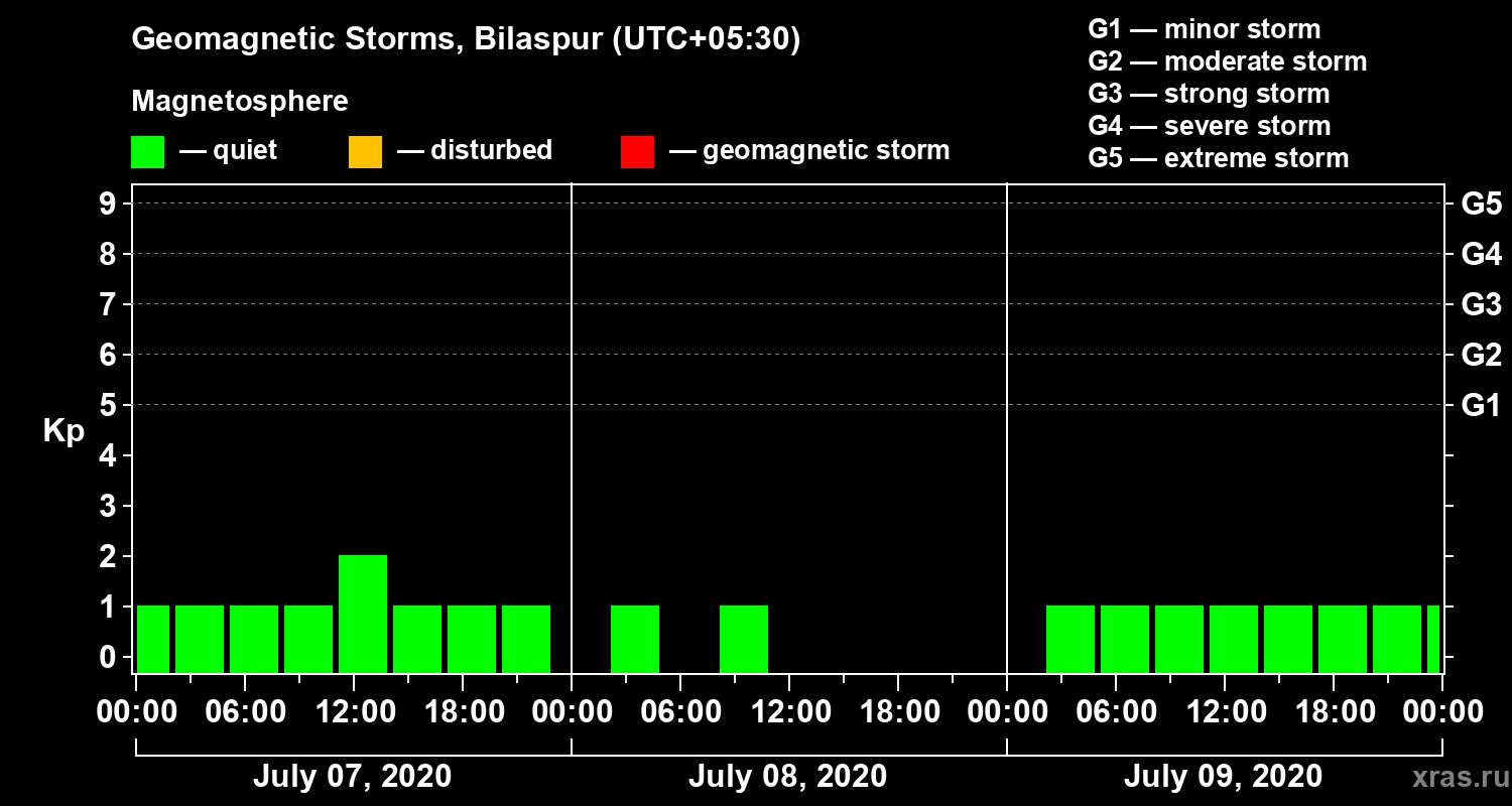 Geomagnetic storms in Bilaspur — Jul 09, 2020