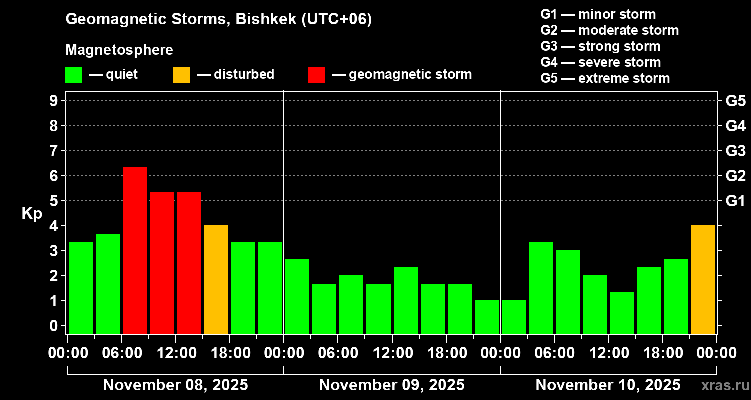 Geomagnetic storms in Bishkek — Nov 10, 2025