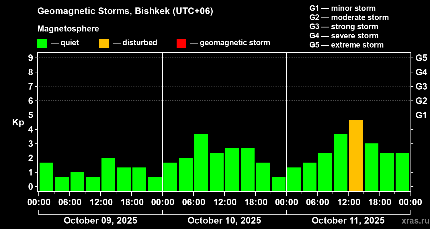 Geomagnetic storms in Bishkek — Oct 11, 2025