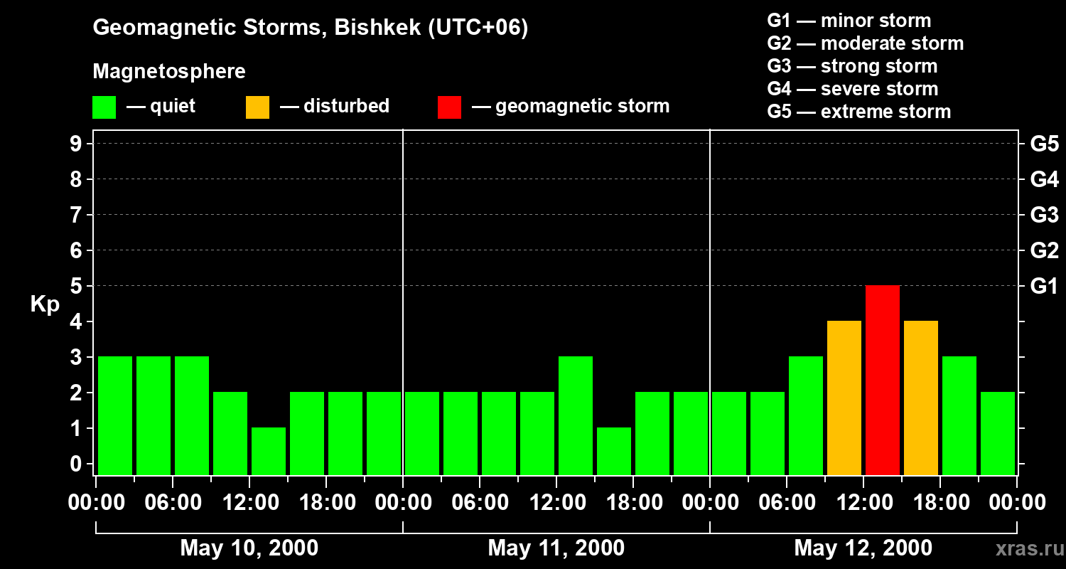 Changes in the geomagnetic index Kp from May 10 to 12, 2000 for mid latitudes