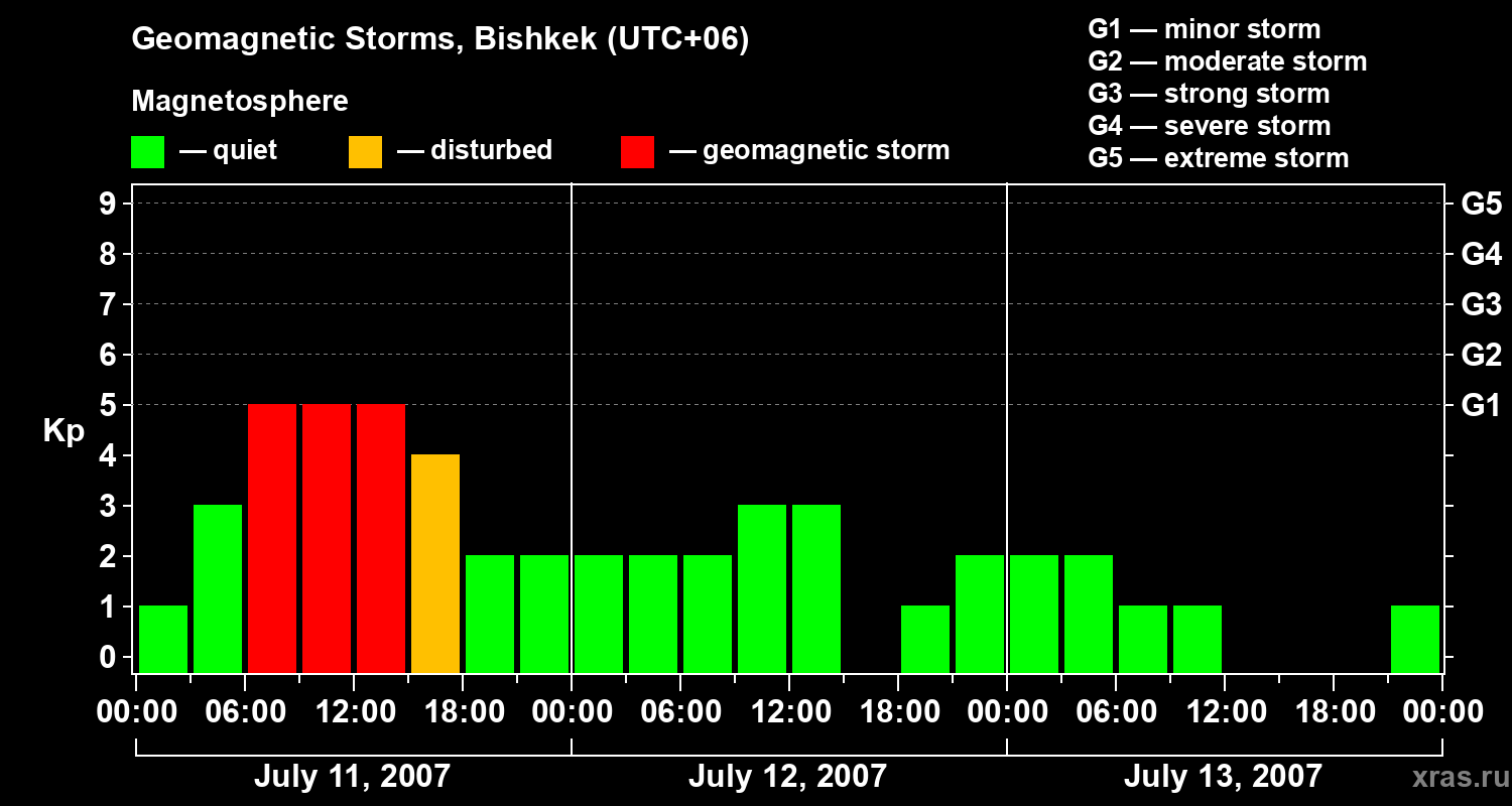 Geomagnetic storms in Bishkek on Jul 13, 2007