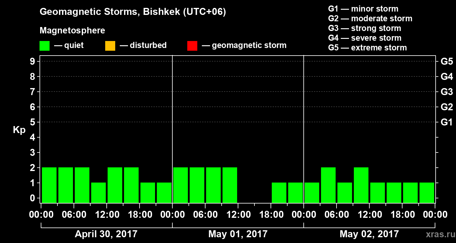 Changes in the geomagnetic index Kp from April 30 to May 2, 2017 for mid latitudes