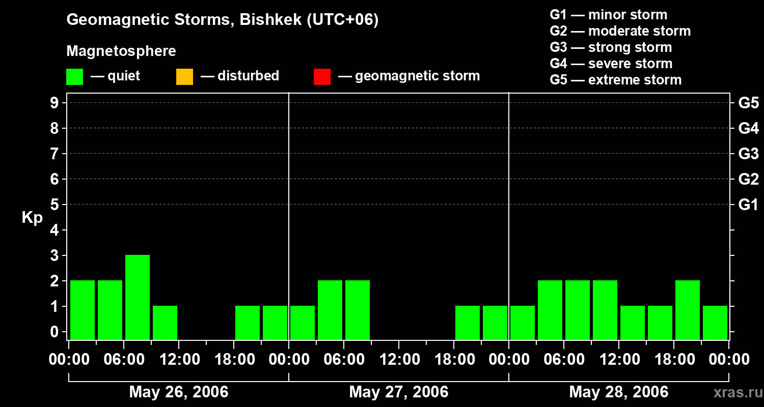 Changes in the geomagnetic index Kp from May 26 to 28, 2006 for mid latitudes