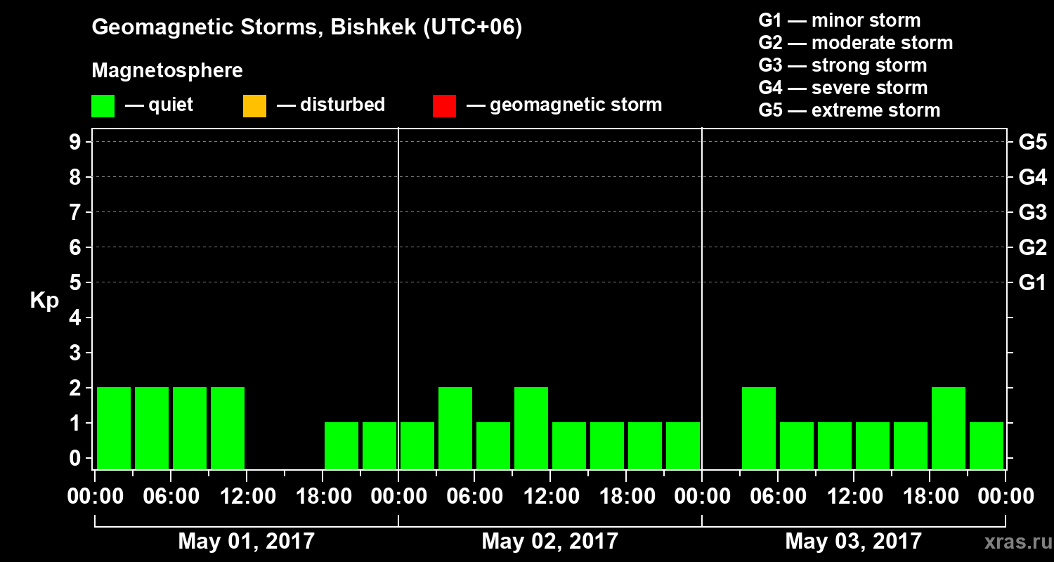 Changes in the geomagnetic index Kp from May 1 to 3, 2017 for mid latitudes