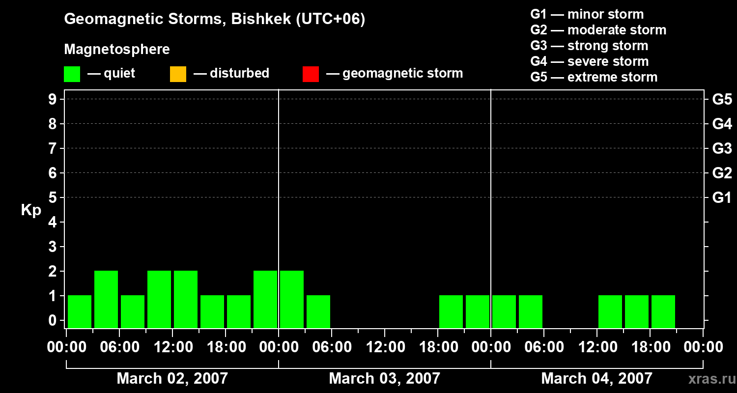 Geomagnetic storms in Bishkek on Mar 04, 2007