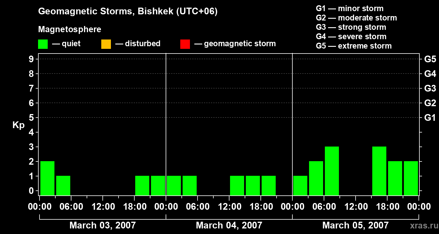 Geomagnetic storms in Bishkek on Mar 05, 2007