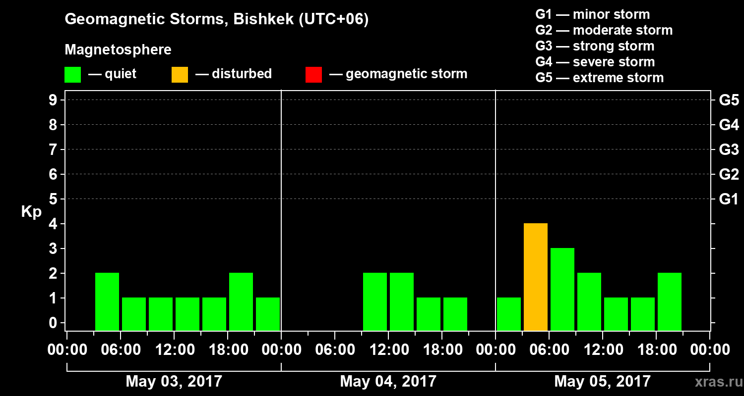 Changes in the geomagnetic index Kp from May 3 to 5, 2017 for mid latitudes