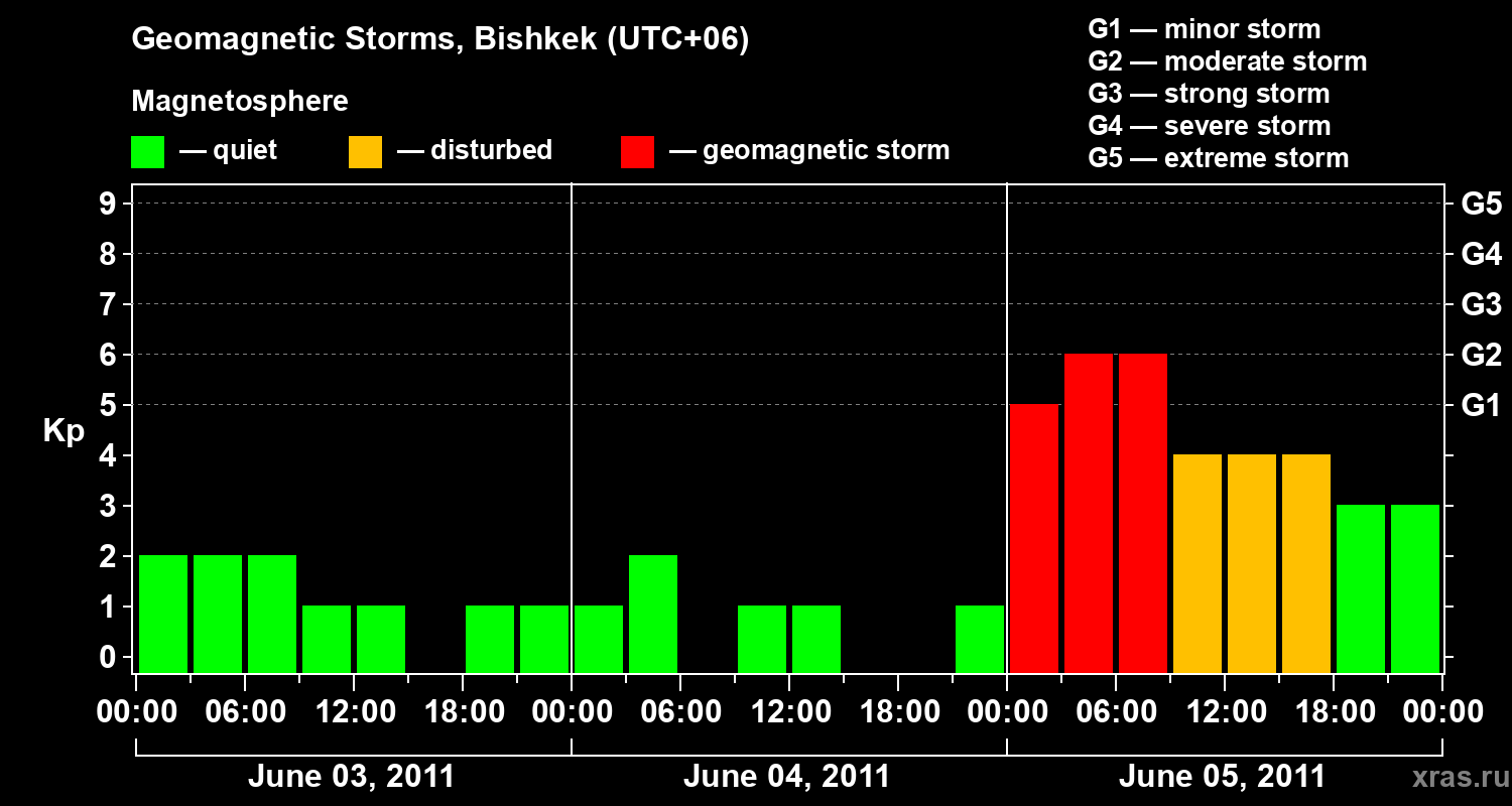 Geomagnetic storms in Bishkek on Jun 05, 2011