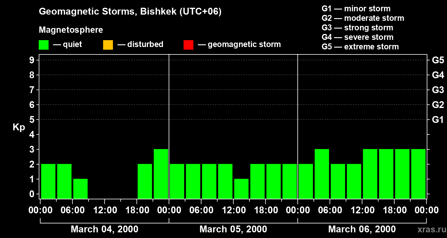 Geomagnetic storms in Bishkek on Mar 06, 2000