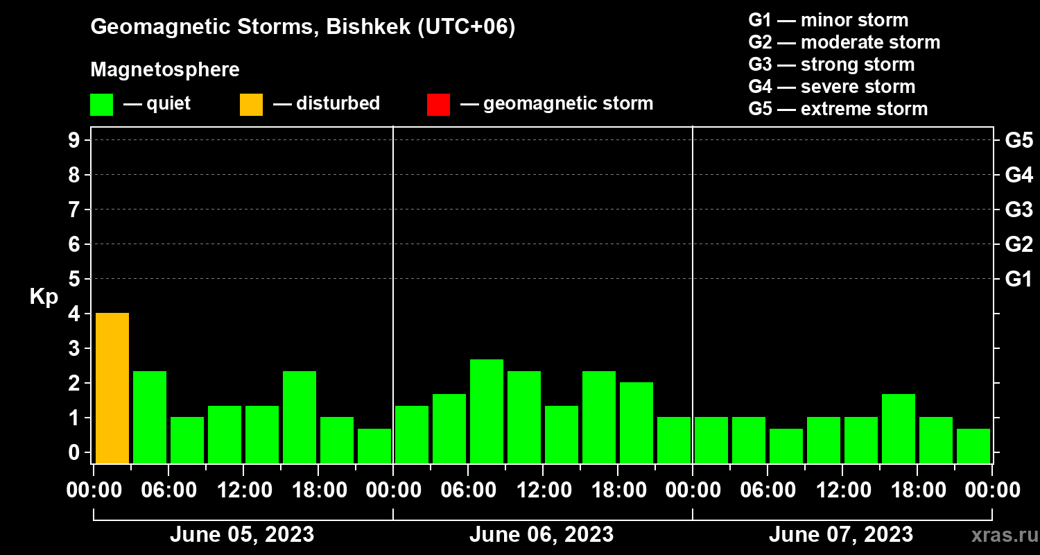 Geomagnetic storms in Bishkek on Jun 07, 2023