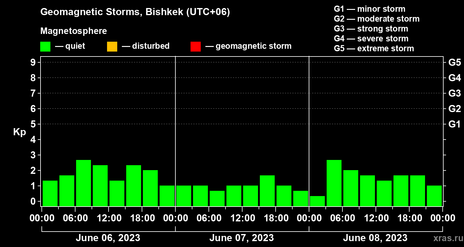 Geomagnetic storms in Bishkek on Jun 08, 2023