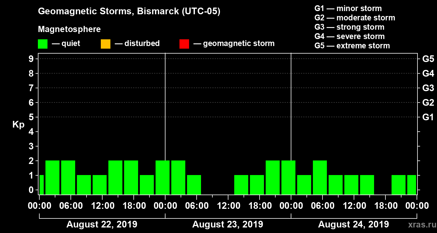 Geomagnetic storms in Bismarck in August 2019