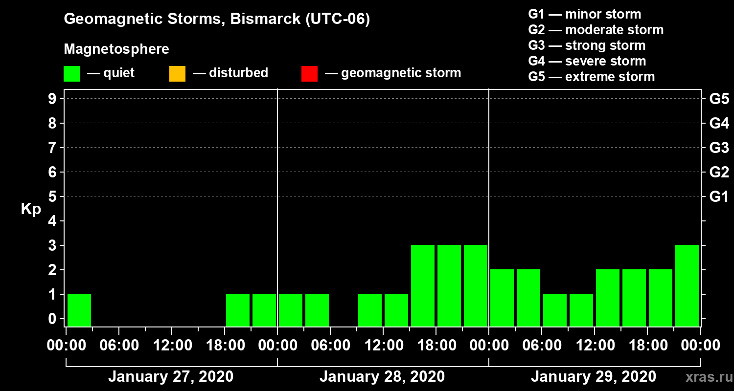 Geomagnetic storms in Bismarck in January 2020
