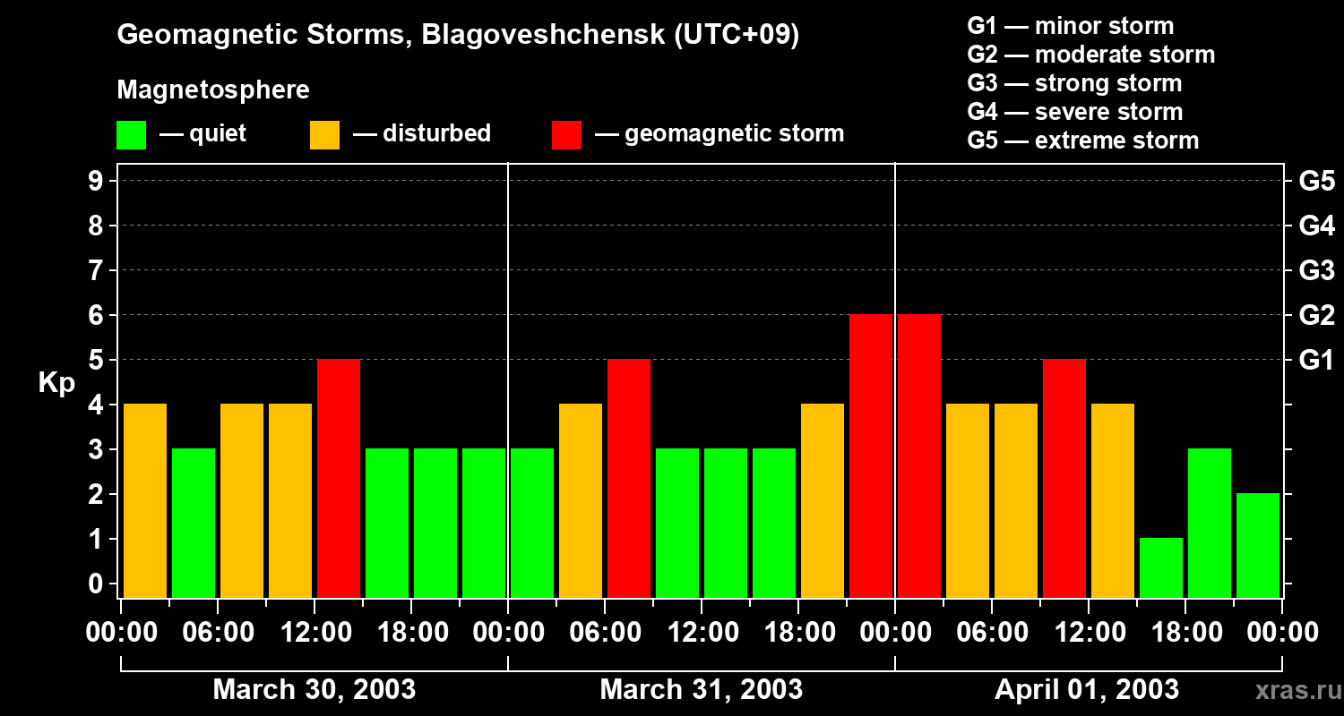 Geomagnetic storms in Blagoveshchensk — Apr 01, 2003