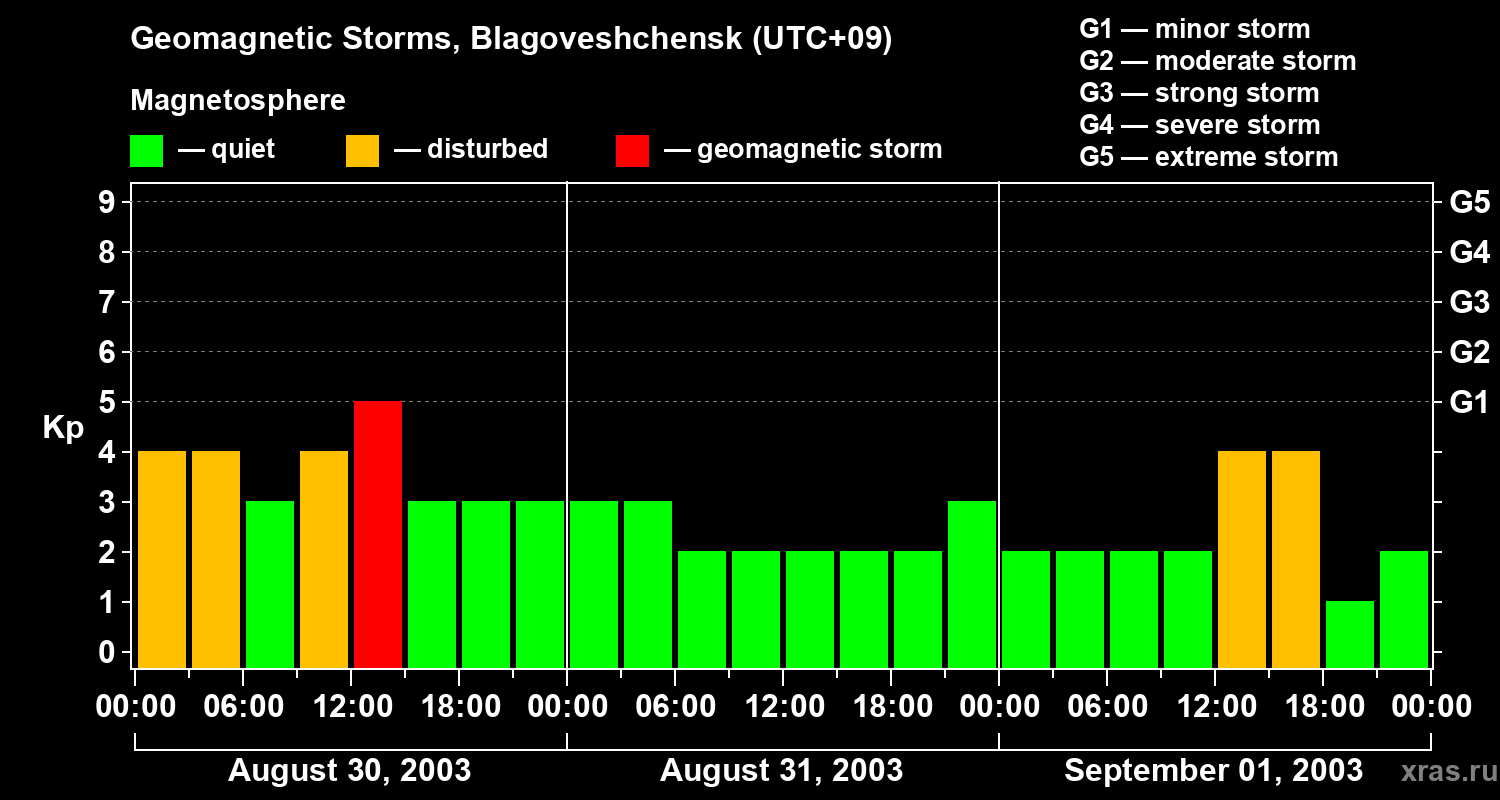 Geomagnetic storms in Blagoveshchensk on Sep 01, 2003