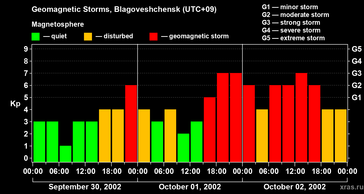 Geomagnetic storms in Blagoveshchensk — Oct 02, 2002