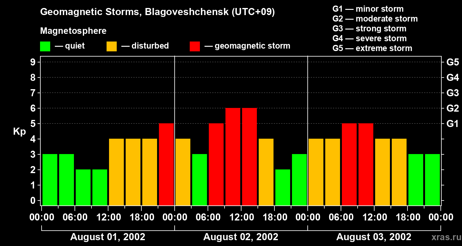 Geomagnetic storms in Blagoveshchensk — Aug 03, 2002