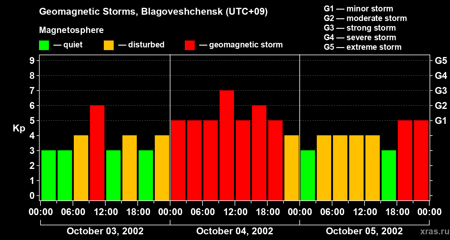 Geomagnetic storms in Blagoveshchensk — Oct 05, 2002