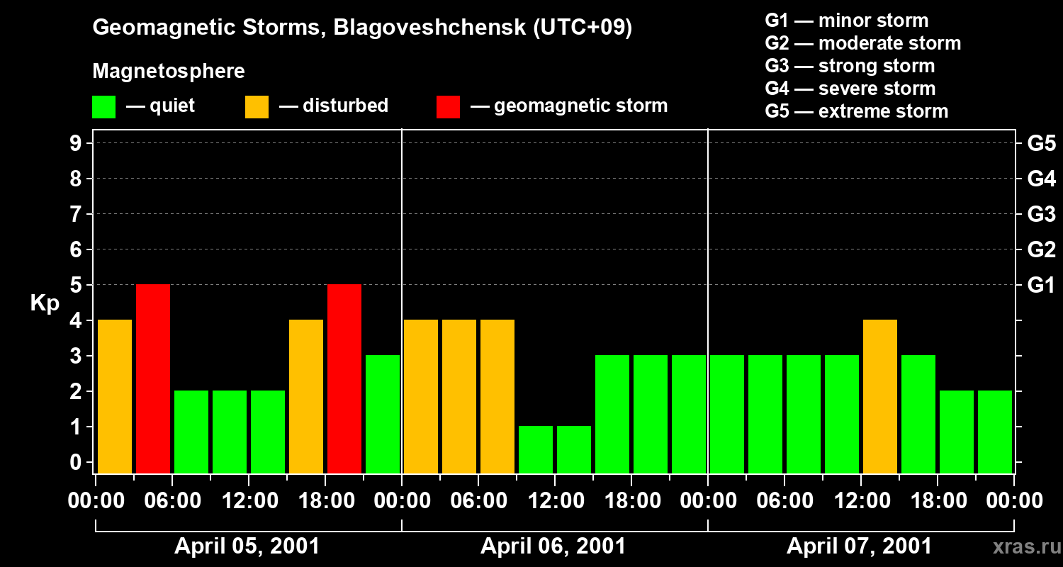 Geomagnetic storms in Blagoveshchensk on Apr 07, 2001