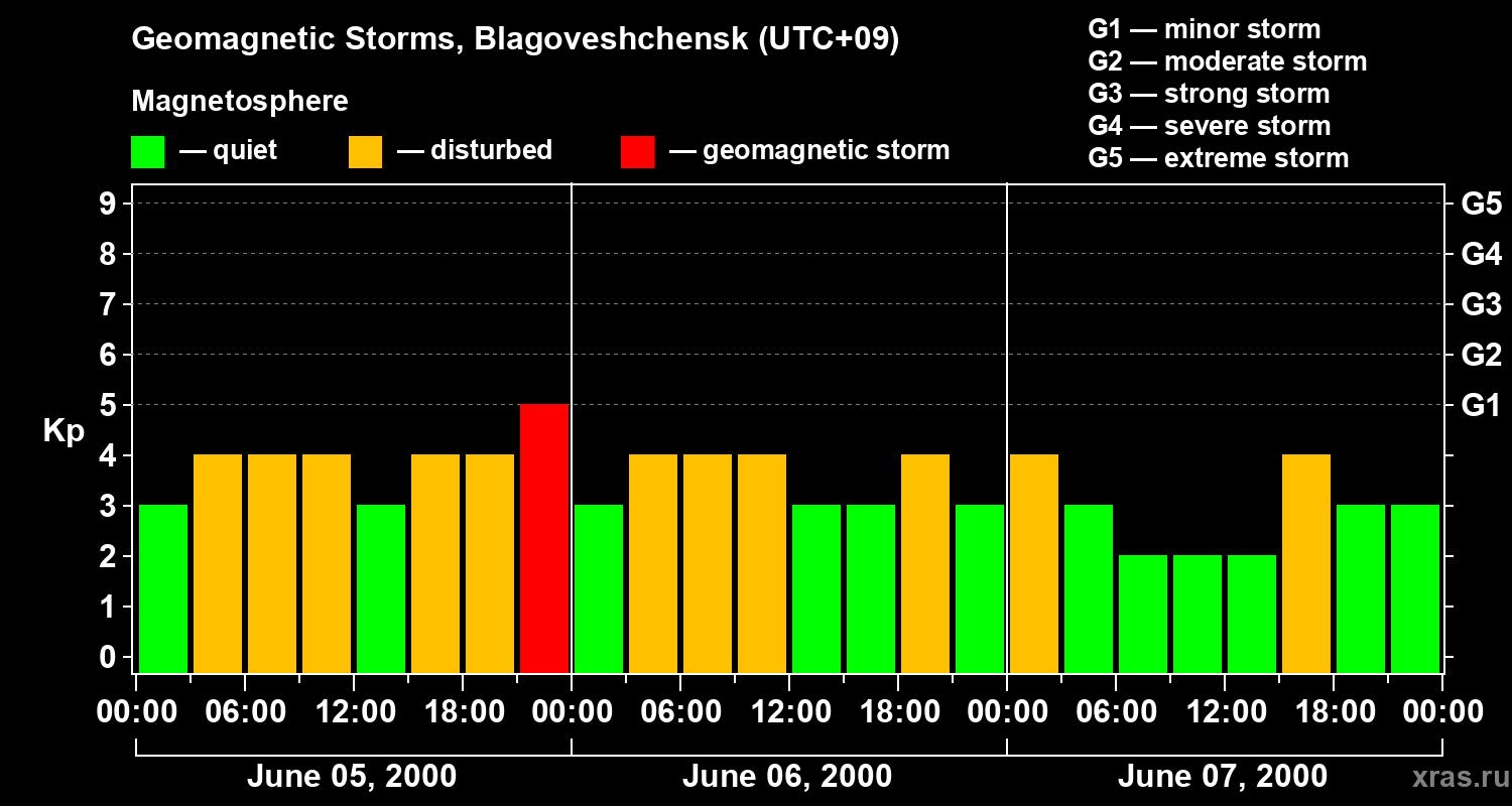 Geomagnetic storms in Blagoveshchensk — Jun 07, 2000