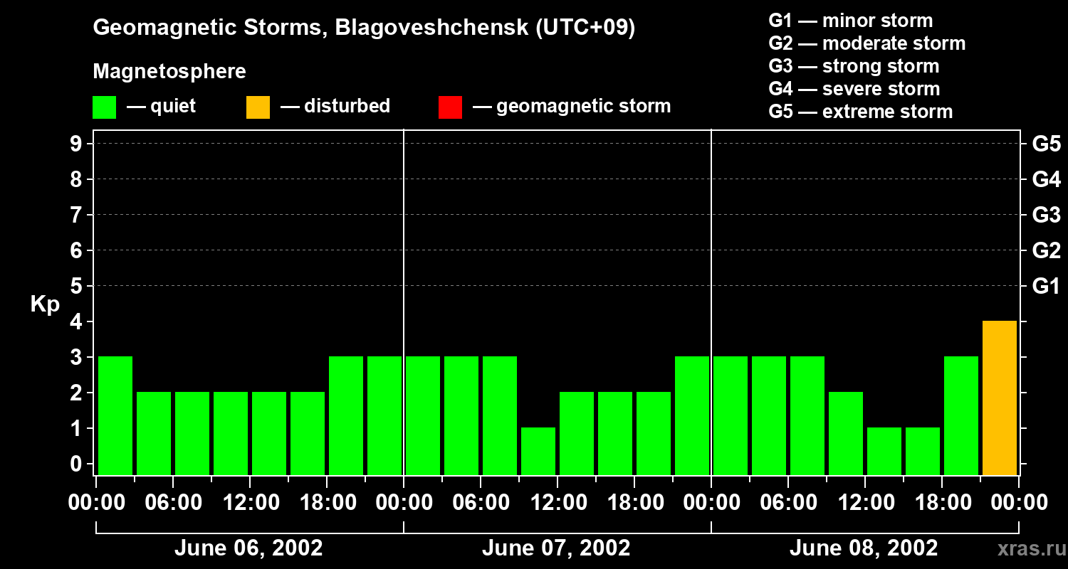 Geomagnetic storms in Blagoveshchensk on Jun 08, 2002