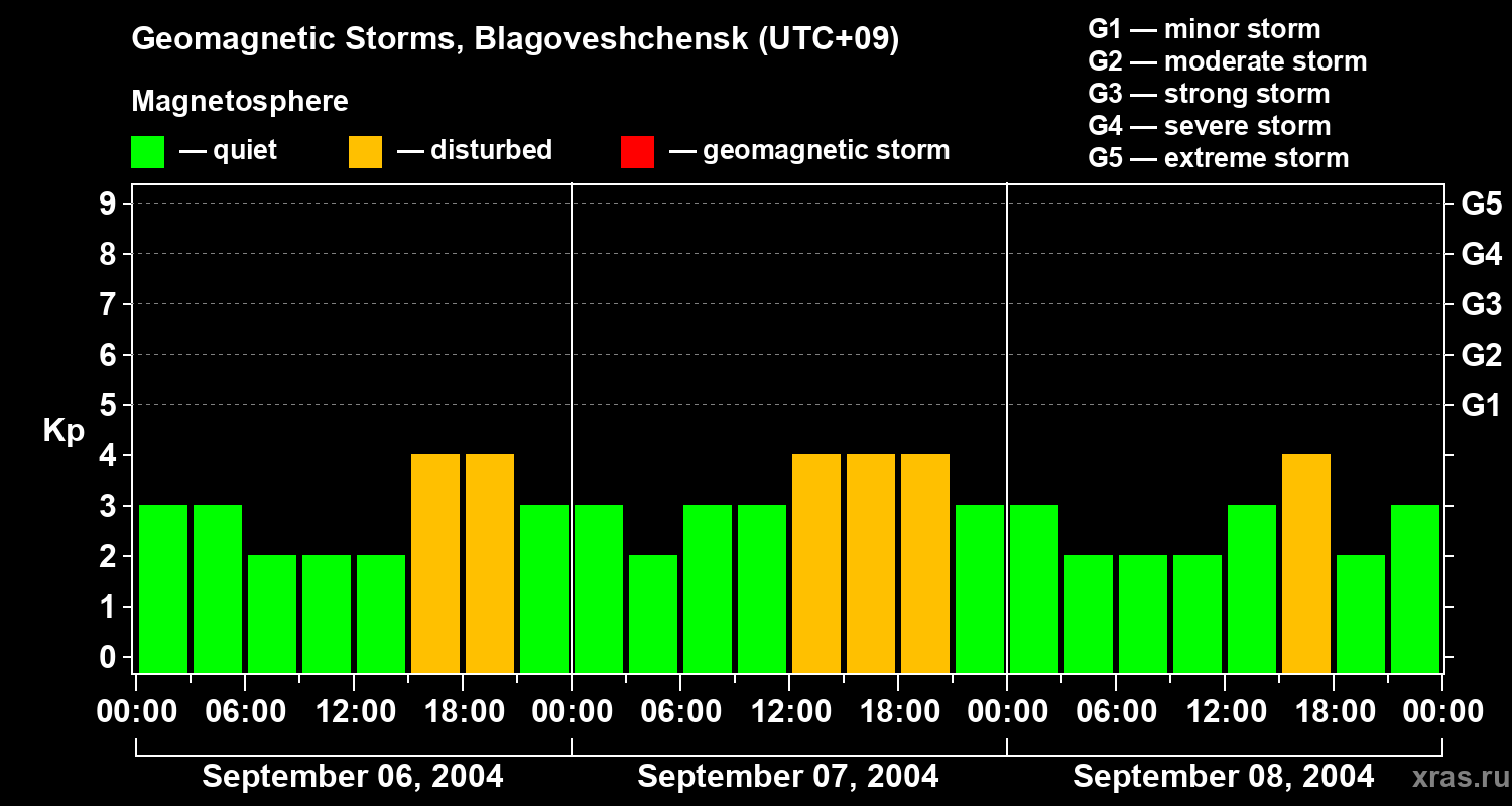 Geomagnetic storms in Blagoveshchensk on Sep 08, 2004
