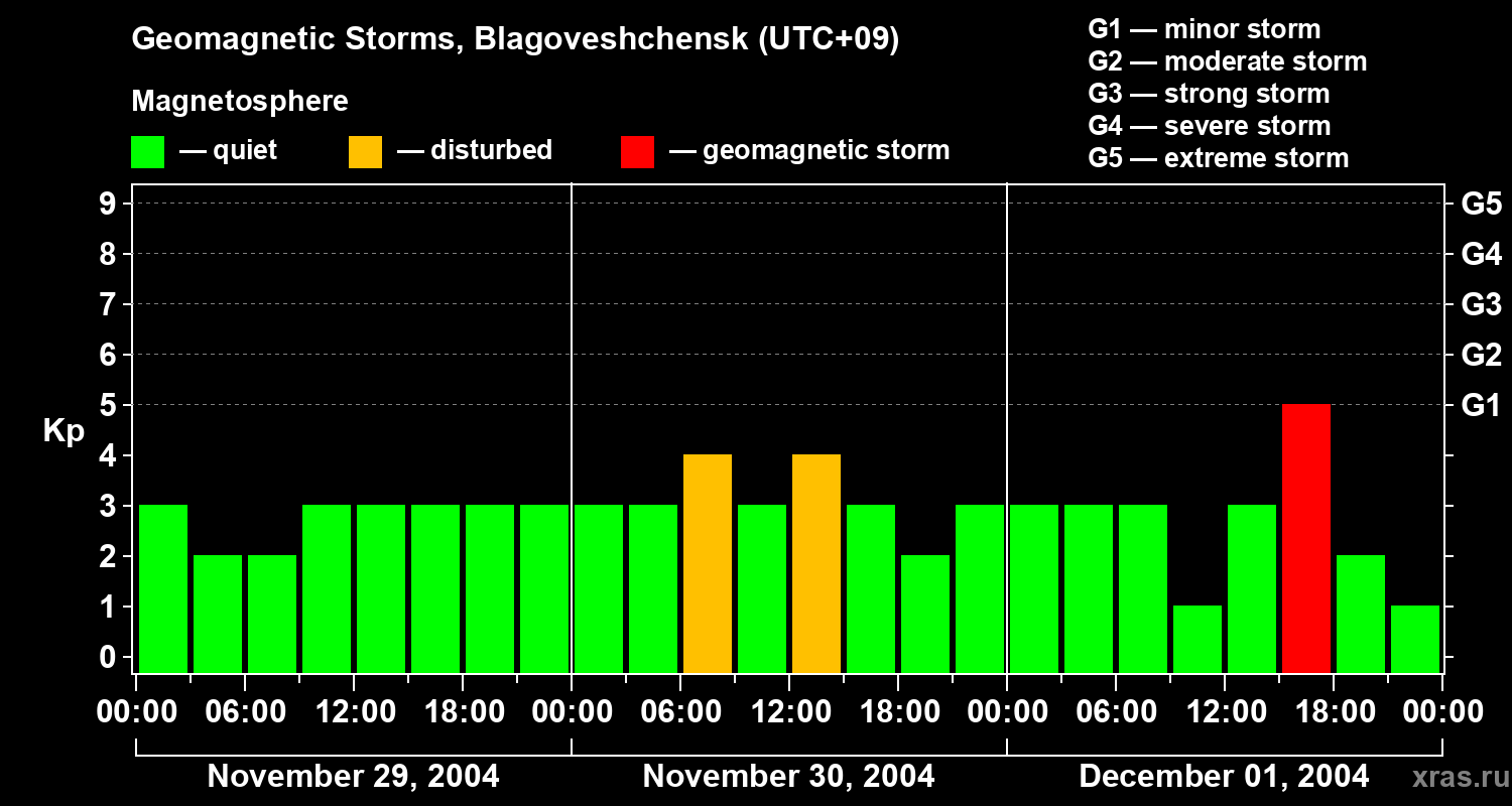 Geomagnetic storms in Blagoveshchensk — Dec 01, 2004